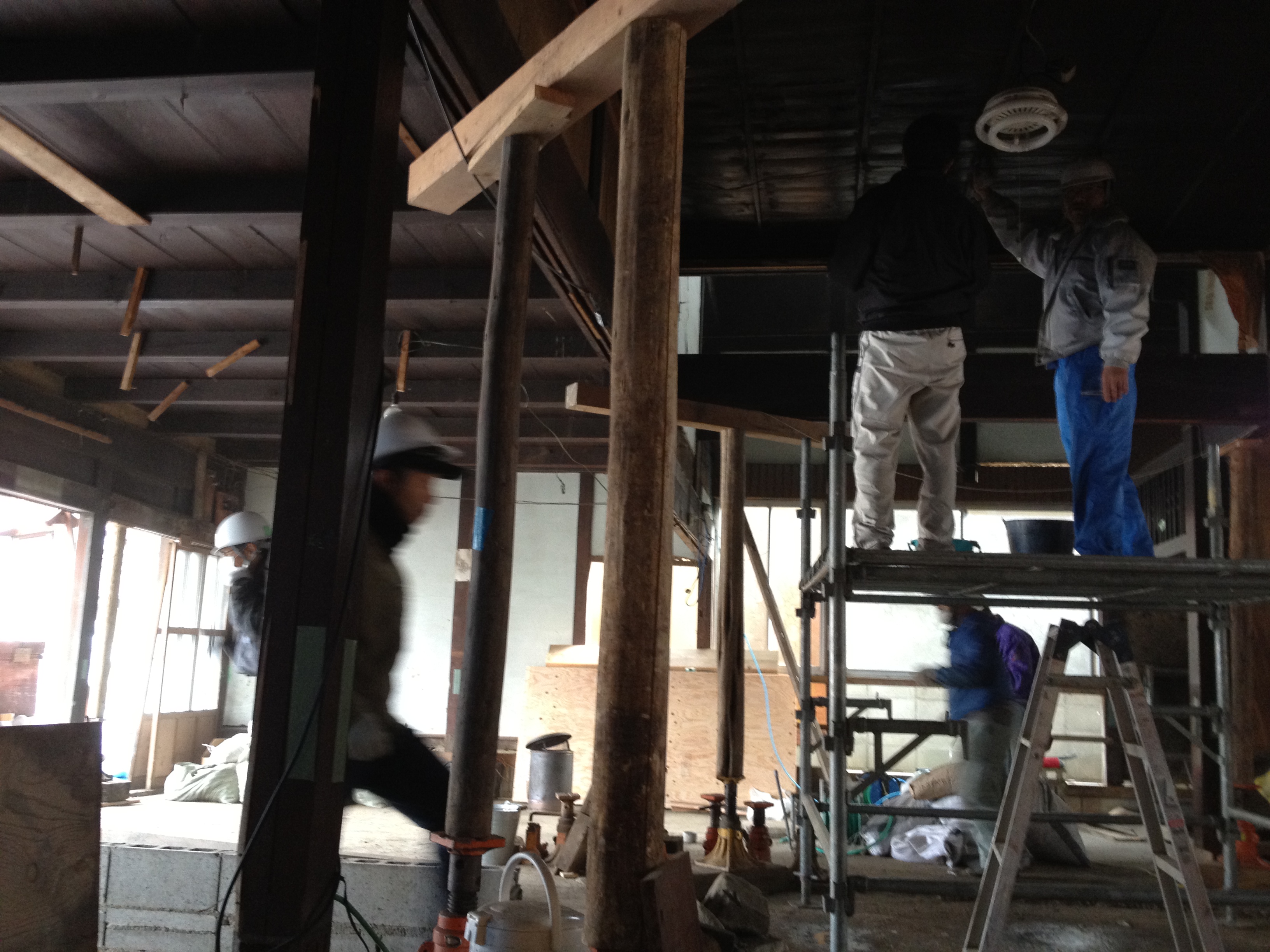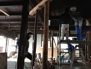 福住の古民家を参加型で改装している様子です。この場所は、2012年5月にイタリア家庭料理店「トラットリア・アル・ラグー」としてオープン。 地域に根ざしたお店、交流拠点としても料理講座などを随時開催しています。(2012/01/28  撮影:ROOT谷垣)