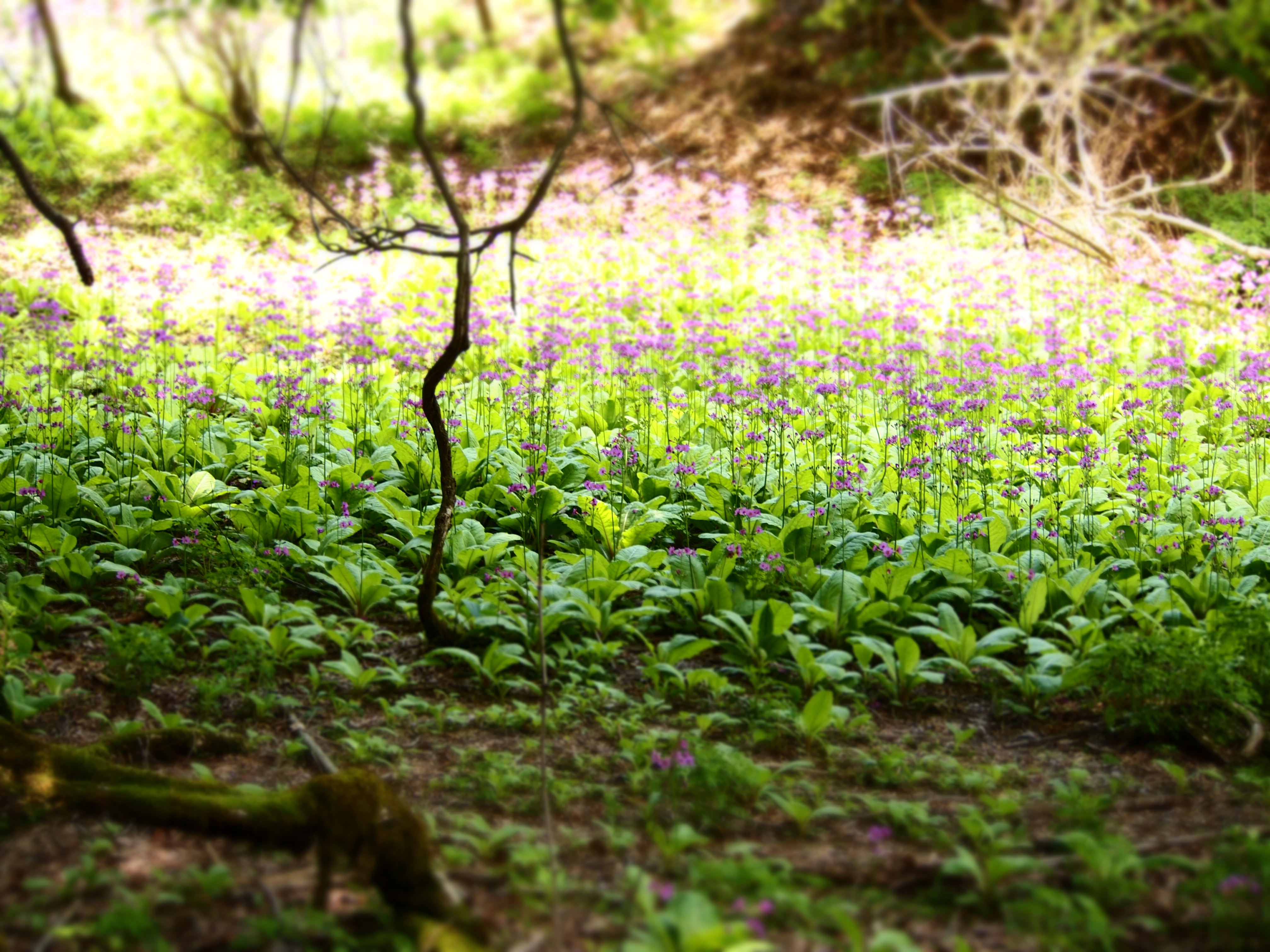 三嶽山のクリンソウ群生地にて。可憐です。そこまでの山道の険しさも忘れ、しばし眺め入ります。(2011/05/25 撮影:ROOT片平)