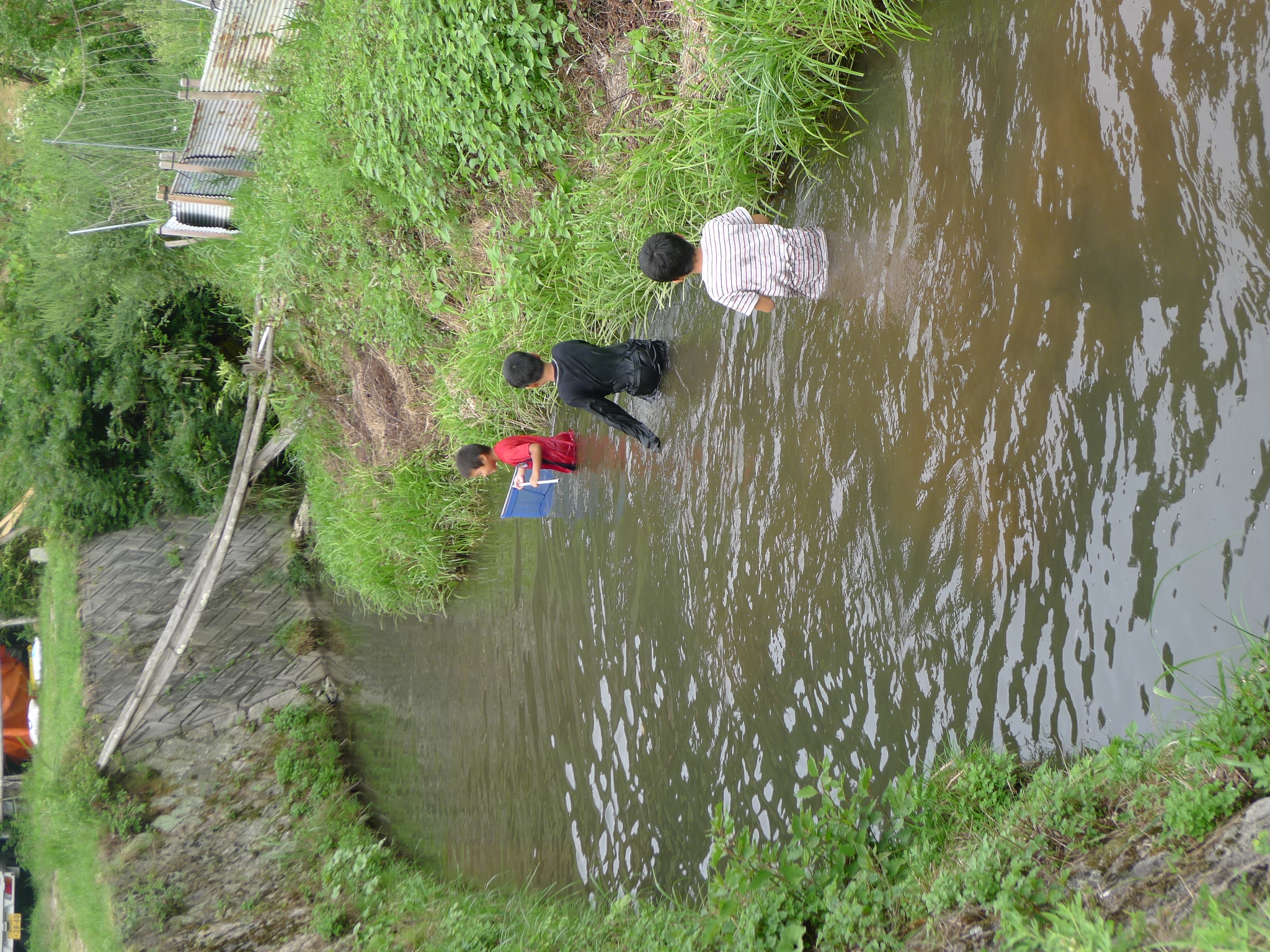 篠山市着地型観光ガイドブック「明日、ささやまいこうかな」冊子の取材中の1コマ。取材先のお宅の裏から、小さな川を撮らせていただきました。夏の日、澄み切った水が涼しげです。