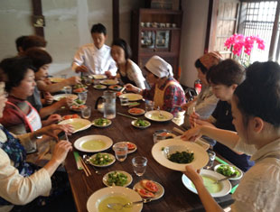 みんなでわいわい、出来上がったお料理を試食しています。(2012/06/19 撮影:ROOT谷垣)
